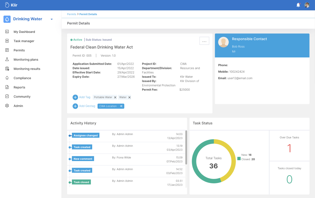 Before Klir, managing 1,000+ permits and 300,000+ water samples every year was a time-consuming and stress-inducing process—and demonstrating compliance meant pulling information from many different systems.